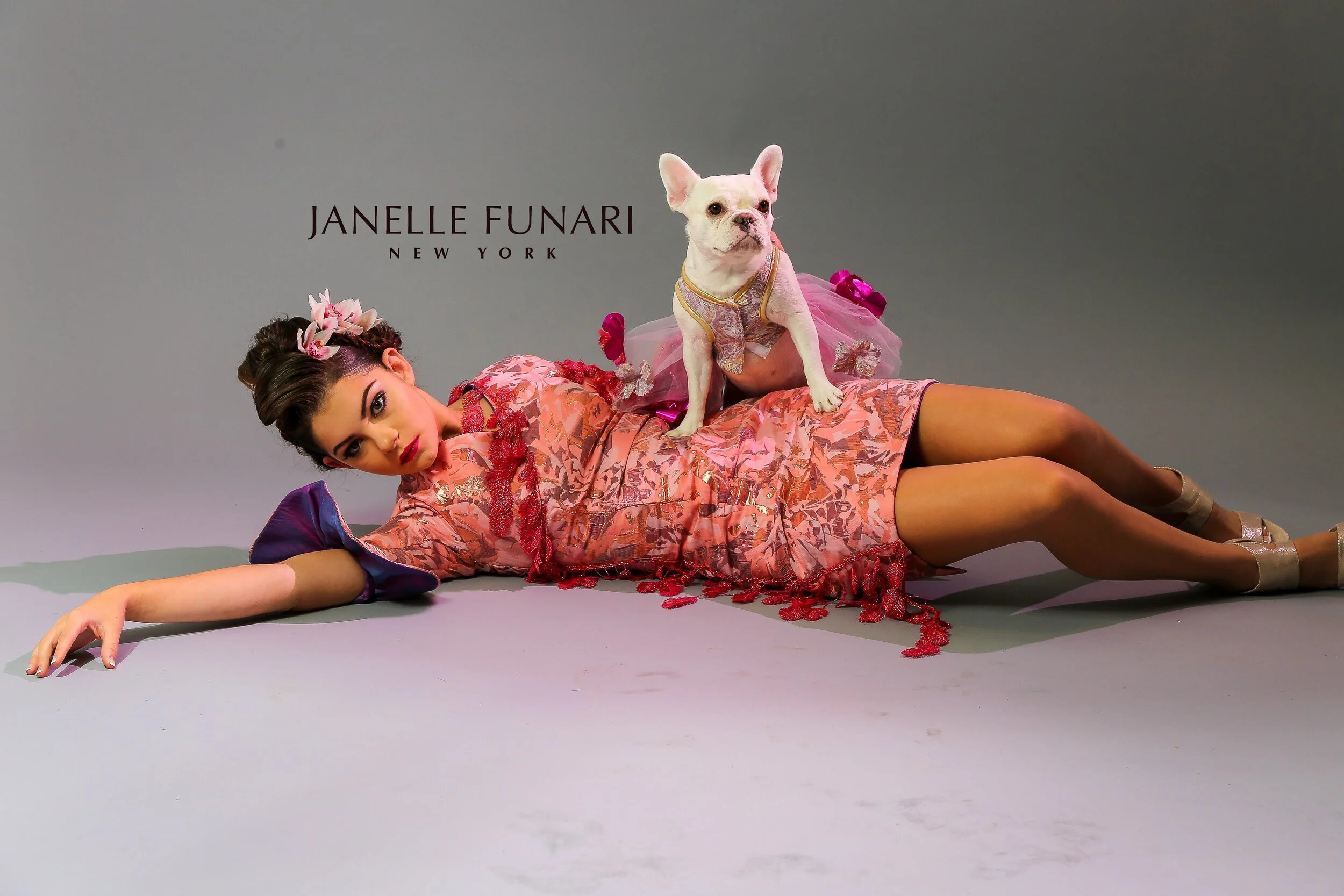Share your pet couture vision and work directly with Funari New York designer Janelle Funari to design your one-of-a-kind pup couture piece.